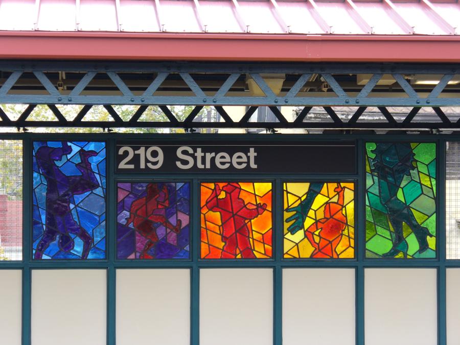 This artwork is called "Homage", it has been installed in the 219th Street station since 2006. The train has opened since 1904, while the artwork was installed more than 100 years later.